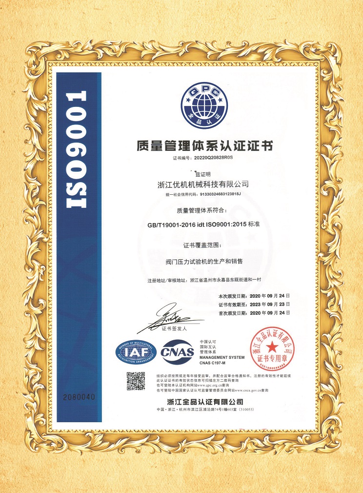 ISO9001質量管理體系認證證書