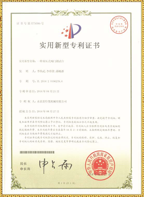螺桿式測試臺技術專利 頂壓式試驗臺專利
